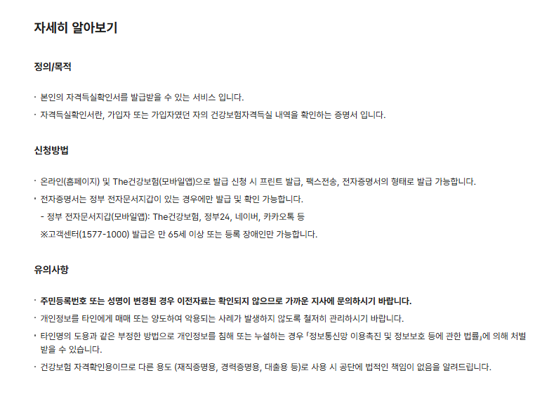 모든 국민이 자신의 건강보험 자격 이력을 확인할 수 있는 이 시스템은 행정 효율성과 개인정보 확인의 신뢰성을 동시에 갖춘 중요한 수단입니다.