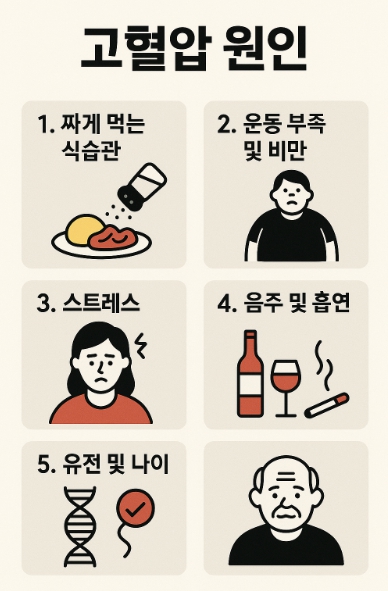- 40~50대: 스트레스·운동 부족이 혈압 상승 주 원인 → 체중조절·운동 병행