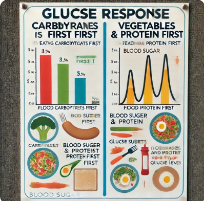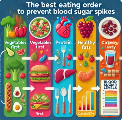- 채소 → 단백질 → 탄수화물 순서로 섭취: