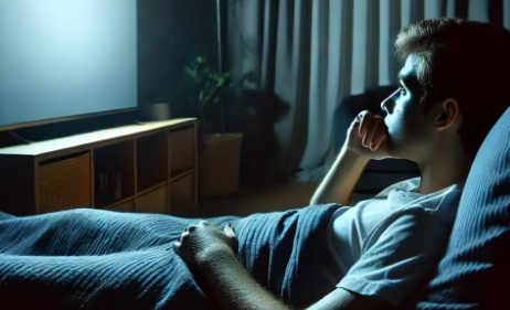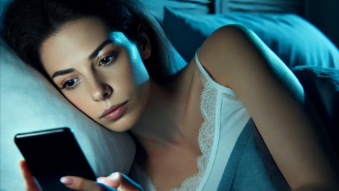 📱 스마트폰, 태블릿, TV 화면에서 나오는 블루라이트는 멜라토닌 분비를 억제하여 불면증을 유발합니다.