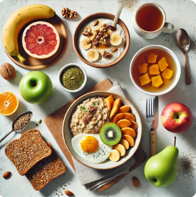 • 아침: 삶은 달걀 + 사과 + 저염 나물