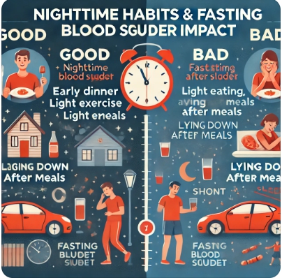- 불면증이나 늦게 자는 습관은 혈당을 높이는 요인