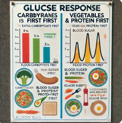 - 채소 → 단백질 → 탄수화물 순서로 섭취