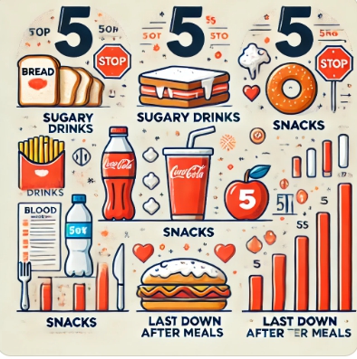 ✔ 5. 혈당 스파이크 유발 음식 피하기